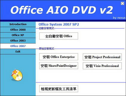 Office All-In-One DVD 光碟包含 Microsoft Office 2000 - 2007 所有版本。內有自